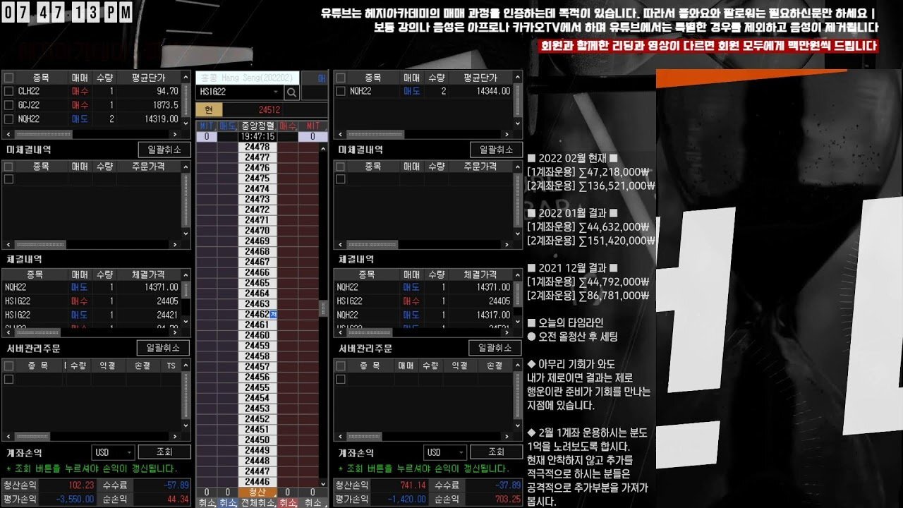 ■ 이른 손절 : 세 종목 모두 방향이 맞지 않아 이른 손절 후 추가부분은 21:00 부터 시작합니다.