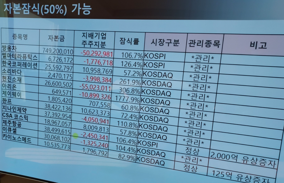 ● 3년(코스닥-2년) 이상 자기자본 50% 이상 잠식