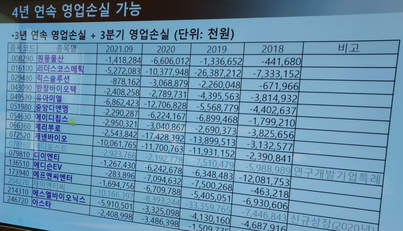 코로나가 장기로 지속될지 몰랐기 때문에 상장 폐지 예정종목이 많다.