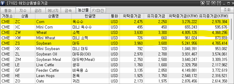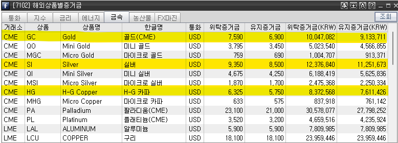 이외 설탕, 면, 커피, 탄소배출권 등이 있지만 지원하지 않는 증권사가 많아 생략한다.
