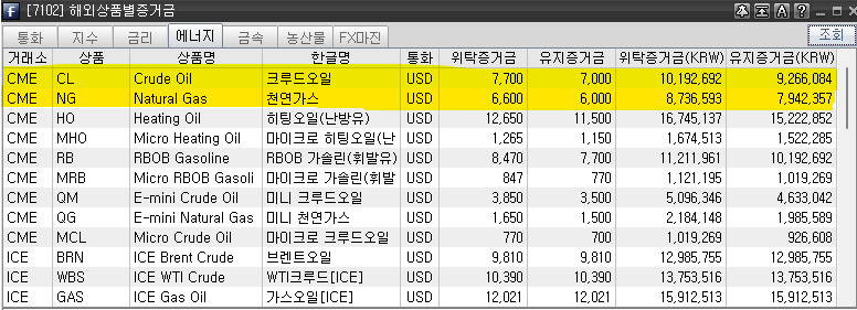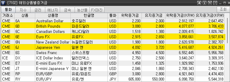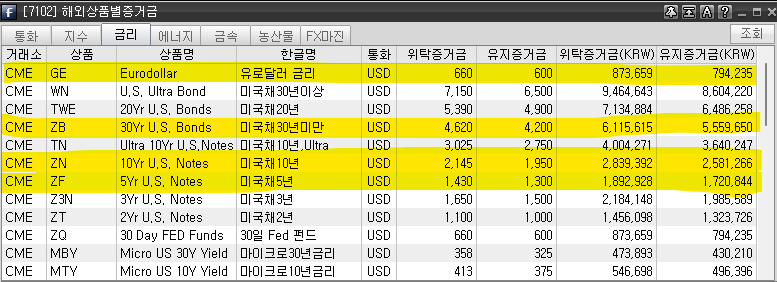 해외선물 주요 종목별 증거금. 삼성선물