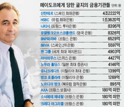 1970.초 ~ 2008.12. 역사상 최대 규모(650억 달러, 약 73조 원)의 폰지사기꾼. 메이도프는 일반인을 상대로 하지 않고 국가편드나 대형 금융사를 상대로 했다.