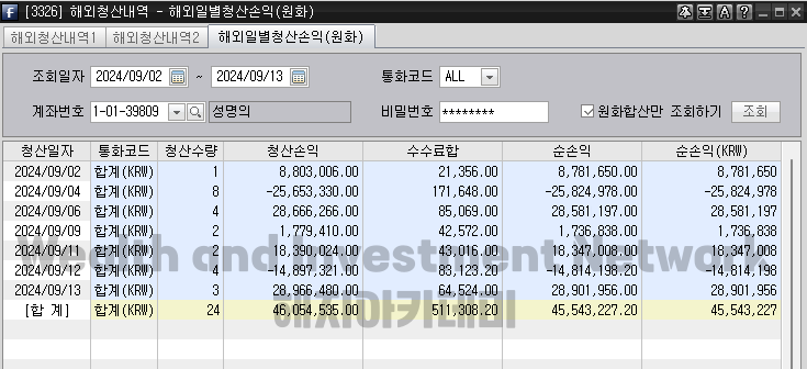 ◐ ⓟ ≡ 최소 2계좌 계정 보유자로서 해외선물(나스닥 골드 오일)의 누적수익만 합산