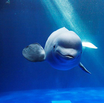 ■ 가슴 지느러미는 달걀 모양. 고래 중에는 흰돌고래와 닮았다.