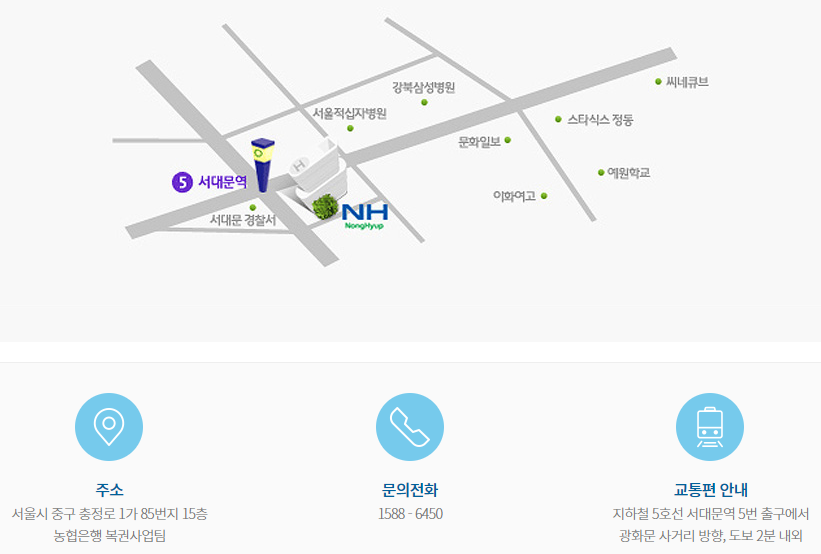 ■ 농협 본점은 수도권 전철 5호선 서대문역 5, 6번 출구를 통해 찾아갈 수 있다.