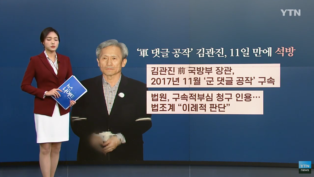 2017. 김관진(군인)이 구속됐다가 구속적부심에서 11일 만에 석방되자 법조계에서도 의아하다는 반응이 많았다.