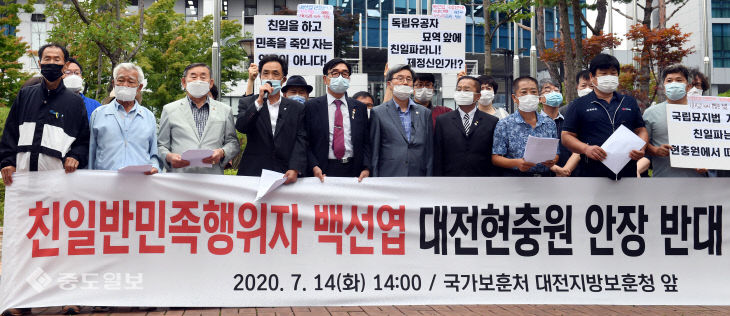 ↓친일반민족행위자 백선엽 대전현충원 안장 반대 기자회견 ⓒ중도일보 링크