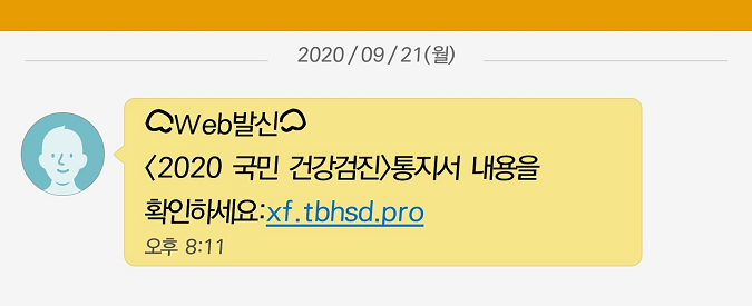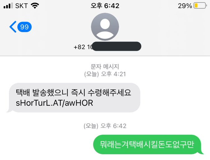 다음과 같은 문자를 받는다면 절대로 누르지 말자. 부연설명 없이 URL만 나온다.