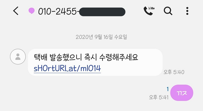이러한 스미싱으로 의심되는 문자가 오면 링크 누르면 안됩니다.