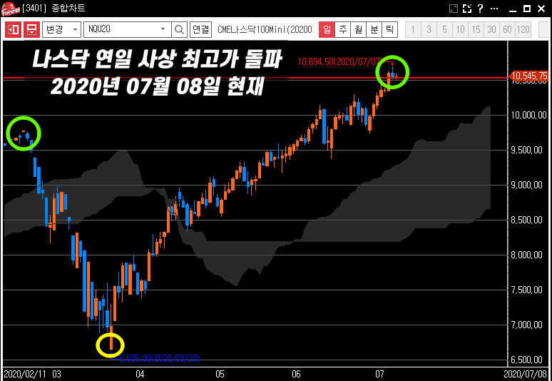 2020년 7월 8일 나스닥을 정식 종목 채택하여 최초 매매 마이크로로 테스트하여 성공하였습니다. 앞으로 나스닥 종목을 마이크로가 아닌 CME나스닥100 Mini로 진행 예정입니다.