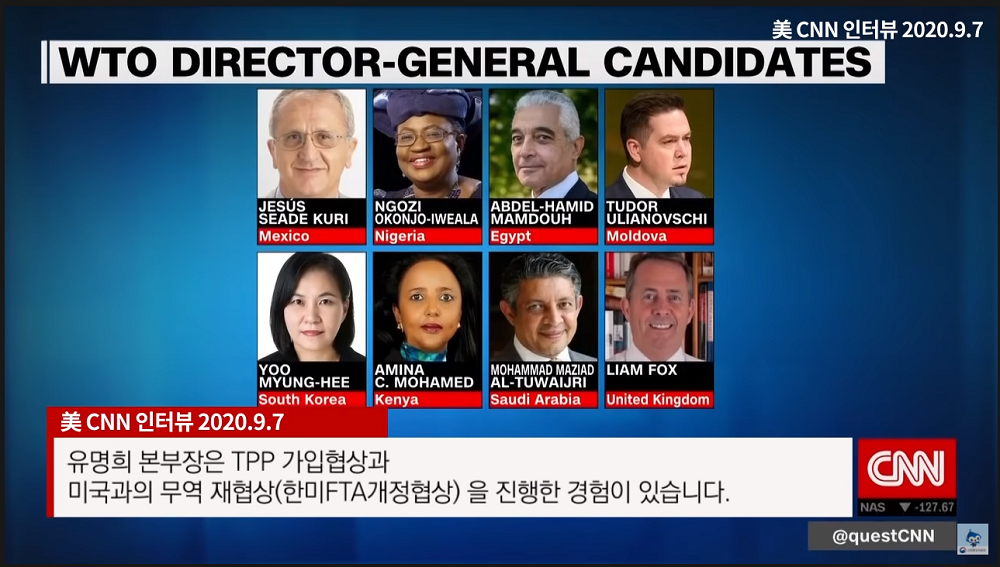 ↓유명희 본부장, 미국 CNN 출연! 'WTO 사무총장에 적임자인 이유' 인터뷰 ⓒ대한민국 산업통상자원부