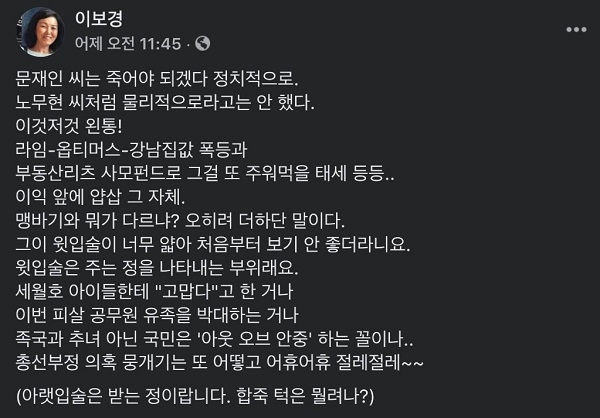 ↓"문재인 씨는 죽어야 되겠다" 라고도 한 바 있다.