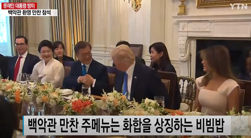 ✔ 도널드 트럼프 미국 대통령이 문재인 대통령을 백악관에 초대했을 때 비빔밥을 대접한 적이 있다.