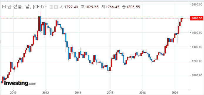 금값이 2011년 11월 이후 최고가 행진을 이어가고 있다.