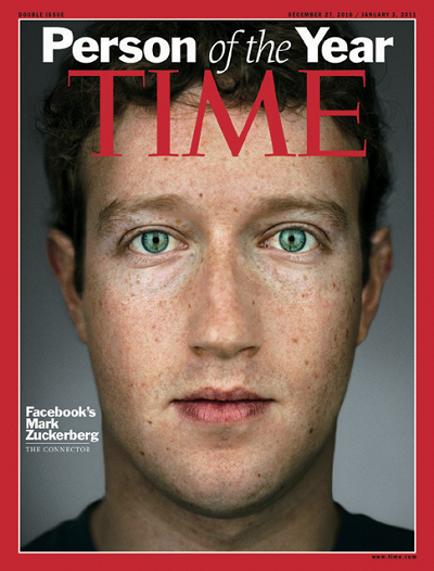 등 쟁쟁한 인물들이 후보에 올랐었다. 저커버그는 당시 26세. 온라인 투표에서는 줄리언 어산지가 38만2천24표를 득표했다. 당시 타임지는 "기성 권위에 대한 신뢰가 저하되고, 분권화가 진행되며, 상호 간의 믿음이 더욱 커지는 급격한 사회 변화 속에서 페이스북을 창안한 주커버그는 이러한 변화의 중심센터가 되고 있다”며 올해의 인물로 선정한 배경을 밝혔다.