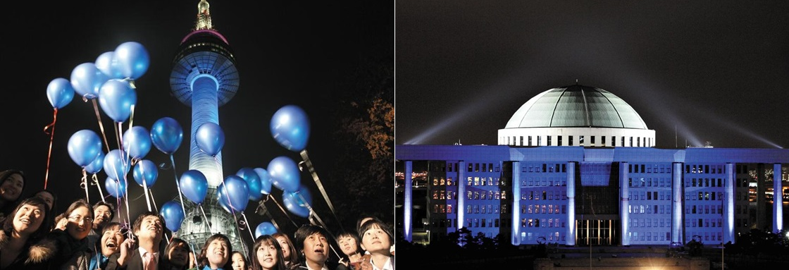 ■ 기념식으로 이 날은 각국의 대표적인 건축물이 당뇨병을 상징하는 색인 파란색으로 점등한다.