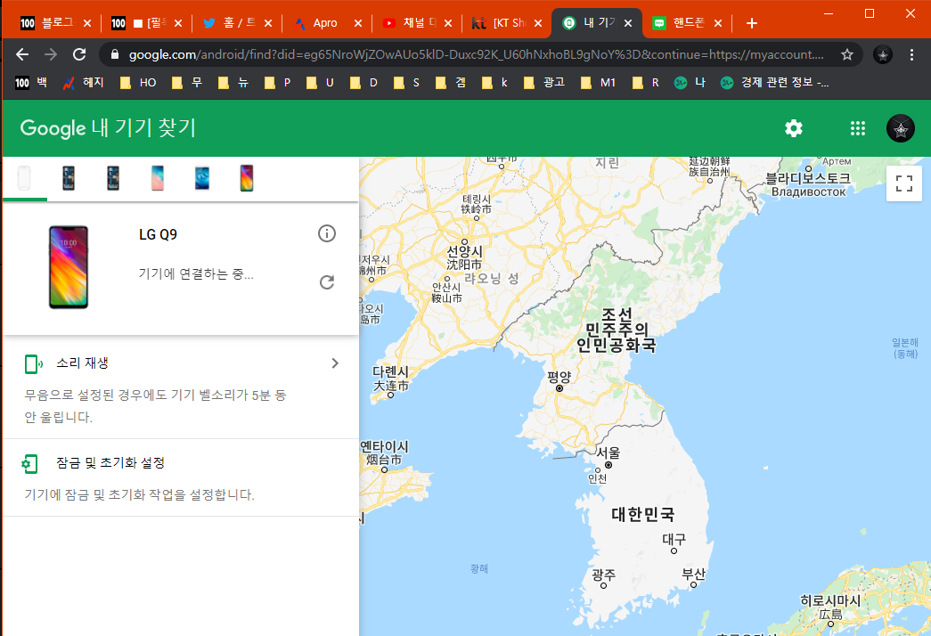 연락도 안되고 분실 휴대폰 찾기 후 기기를 잠그면서