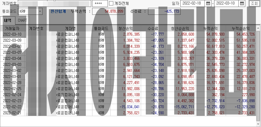 ■ 주의 : 2021.09~10월 부터 매매법이 전환되어 이전 기록은 참고 사항으로 보시기를 바랍니다. 이후에 공식적인 기록은 할 필요가 없어 안했는데 최근 들어오신분 신규 회원 한 분 자료만 예시로 올려드립니다. 게시날짜 2022.03.11. 이후 자료는 없을 예정입니다. 문의를 하고도 믿지를 않는 분들이 많고 지인 계좌 수익을 직접 보고 소개로 오시는 분이 90%이상 분들이시니까요.
