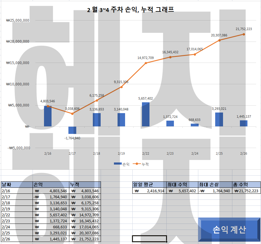 ↓하○○ : 프로방송. 신규 2021.02.05~02.26 항셍은 홍콩달러입니다. 홍콩달러 손실을 포함 16,000,000수익