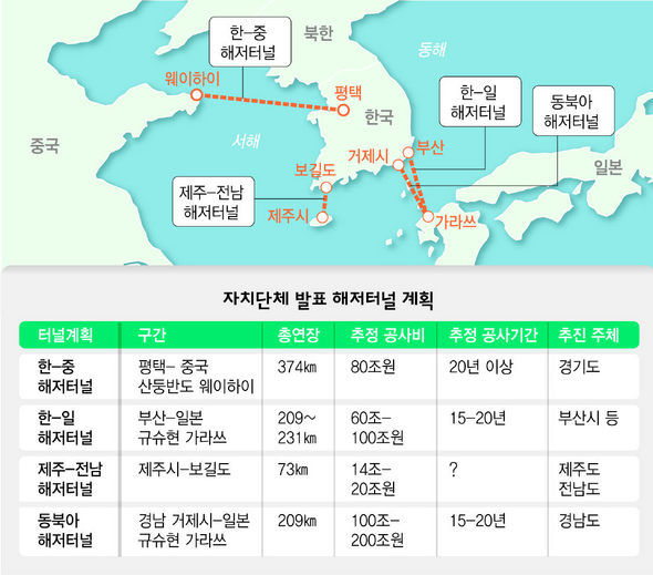 ↓한중·한일·제주 해저터널 ⓒ한겨레