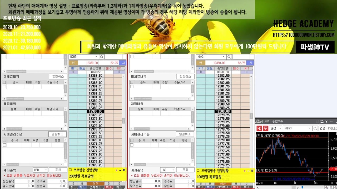 [해외선물/파생] 헤지아카데미 공식방송. 2021.03.09. 프로방송 규모의 손실 †프리캡방송 손실