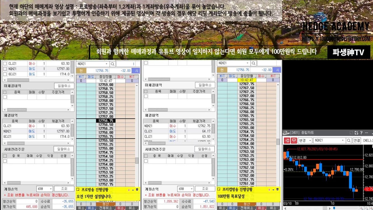 [해외선물/파생] 헤지아카데미 공식방송. 2021.03.10. 프로방송 목표달성 †프리캡방송 목표달성 † 각 추가목표 달성