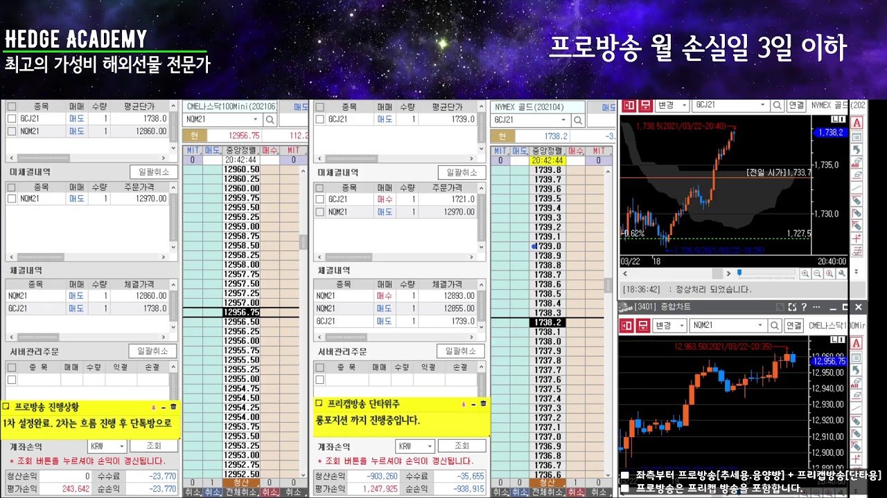 [해외선물/파생] 헤지아카데미 2021.03.22. 월요일 : 프로방송 공식 손실 † 프리캡방송 공식 손실