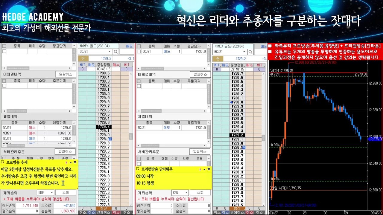 [해외선물/파생] 2021.03.29. 월요일 : 프로방송 목표 달성 † 프리캡방송 목표달성 : 프로방송 7,356,815 프리캡 4,698,106