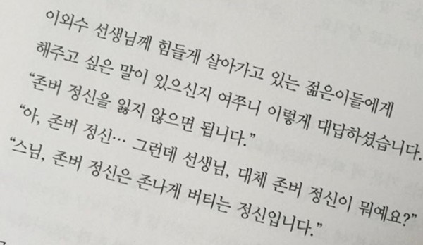 혜민 스님이 이외수에게 요즘 힘들게 살아가는 젊은이들에게 해주고 싶은 말이 없냐고 묻자, 이외수가 '존버 정신을 잃지 않으면 된다.'고 답한 일화가 있다. 「혜민 스님의 저서 『멈추면 비로소 보이는 것들』 중 」