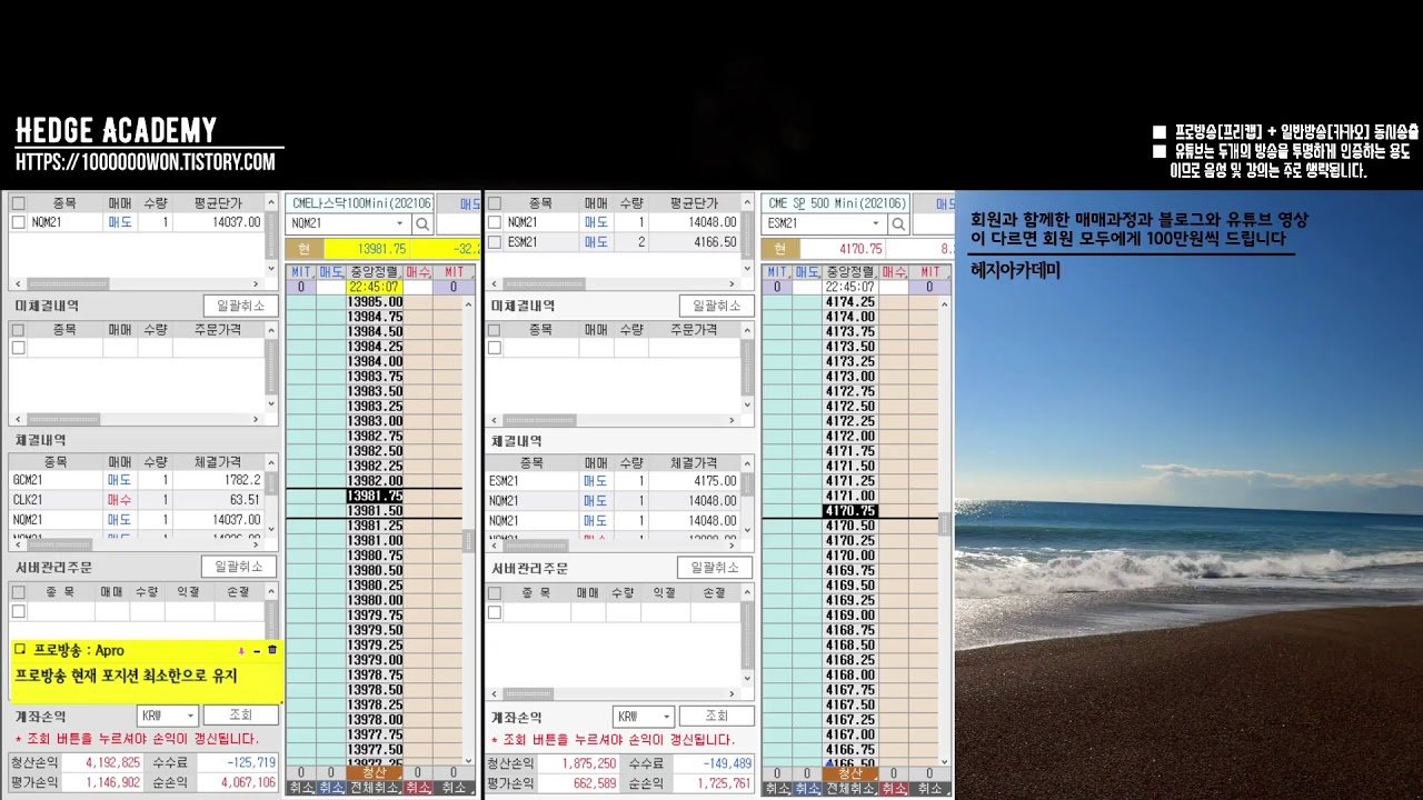 2021.04.16.금요일 [해외선물/파생/헤지아카데미] : 프로방송 목표달성 이상 † 카카오방송 목표일부 미달성 : 각 방송 새벽까지 추가 진행됩니다.