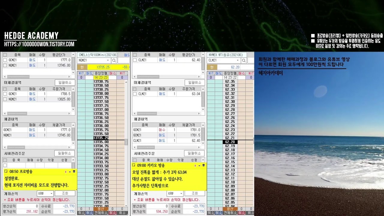 2021.04.21.수요일 [해외선물/파생/헤지아카데미] : 프로방송 진행중† 카카오방송 목표달성