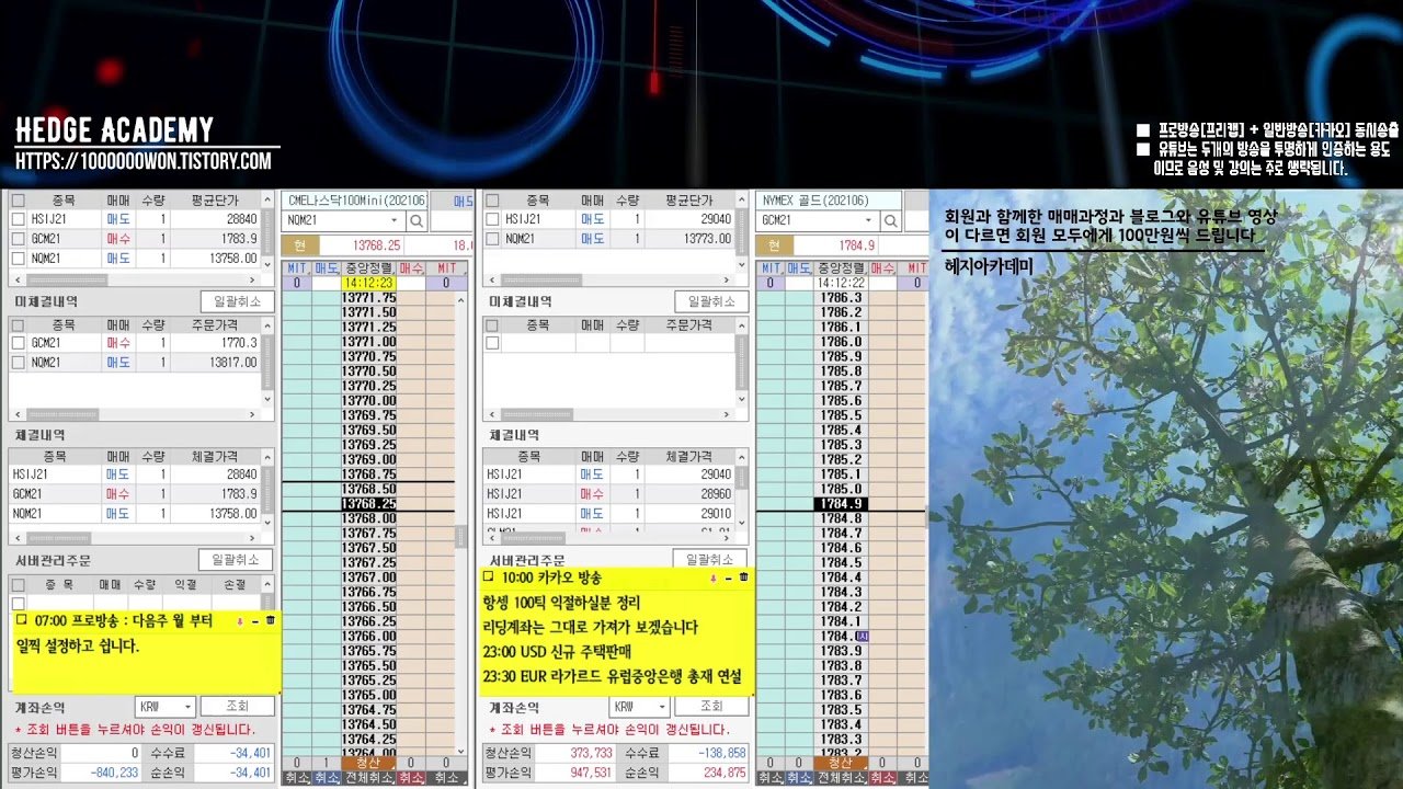 2021.04.23.금요일 [해외선물/파생/헤지아카데미] : 프로방송 지속중 † 단타계좌 목표달성