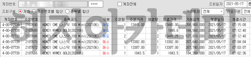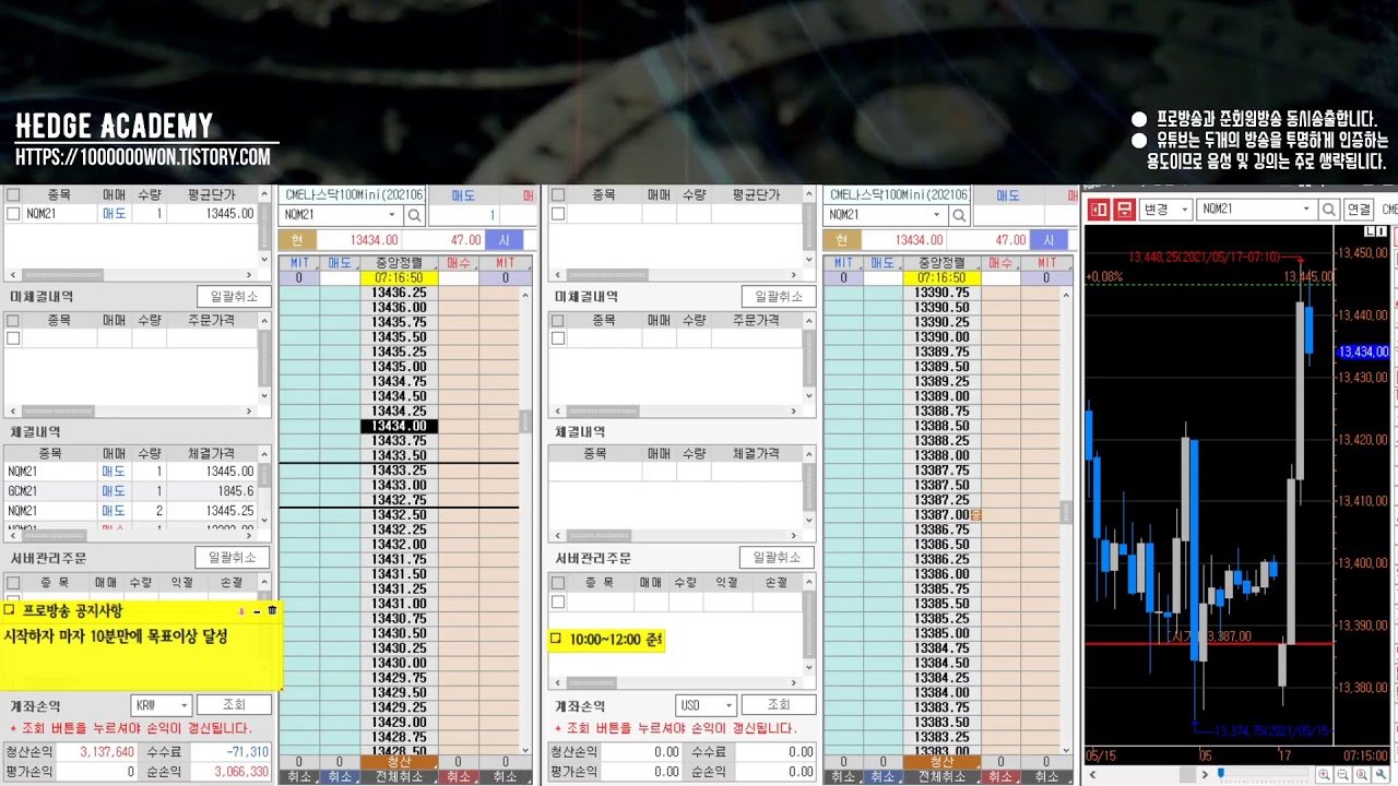 2021.05.17. 월요일 [해외선물/파생/헤지아카데미] : 10분만에 3,066,330 달성