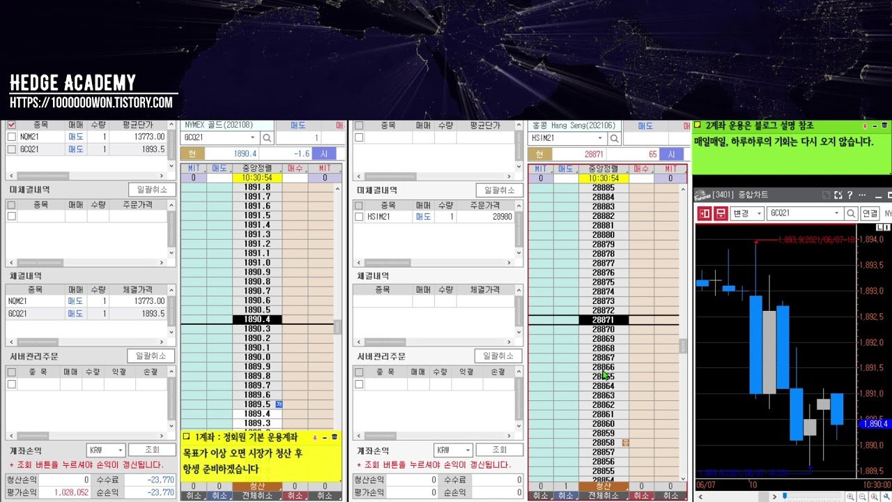 2021.06.07.월요일. 오전목표달성 [해외선물/파생/헤지아카데미] : 추가매매 개인적으로 각자 지속되었습니다.