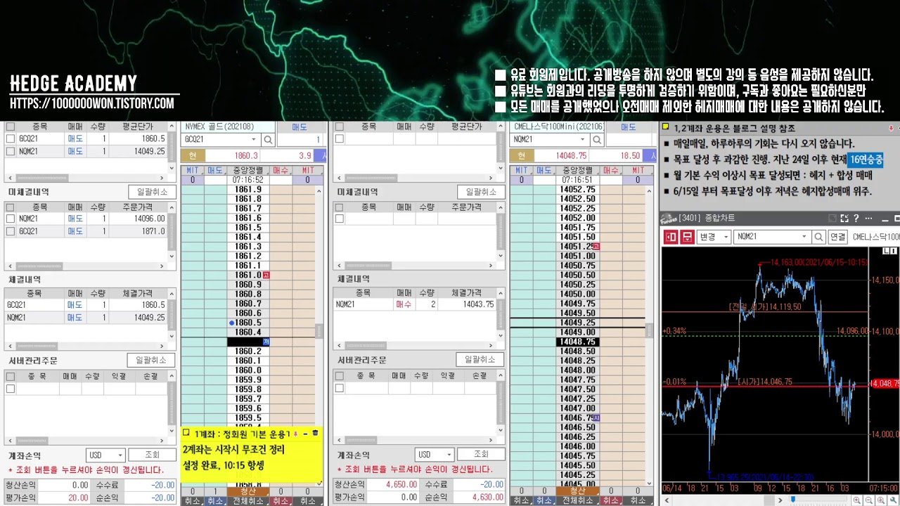 2021.06.16.수요일.오전.(음성있음) 17연승 오버+500 부터 시작 [해외선물/파생/헤지아카데미]