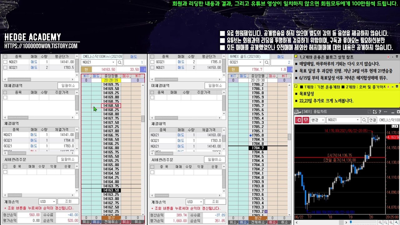 2021.06.22.화요일. 헤지매매 [해외선물/파생/헤지아카데미] : 저녁방송