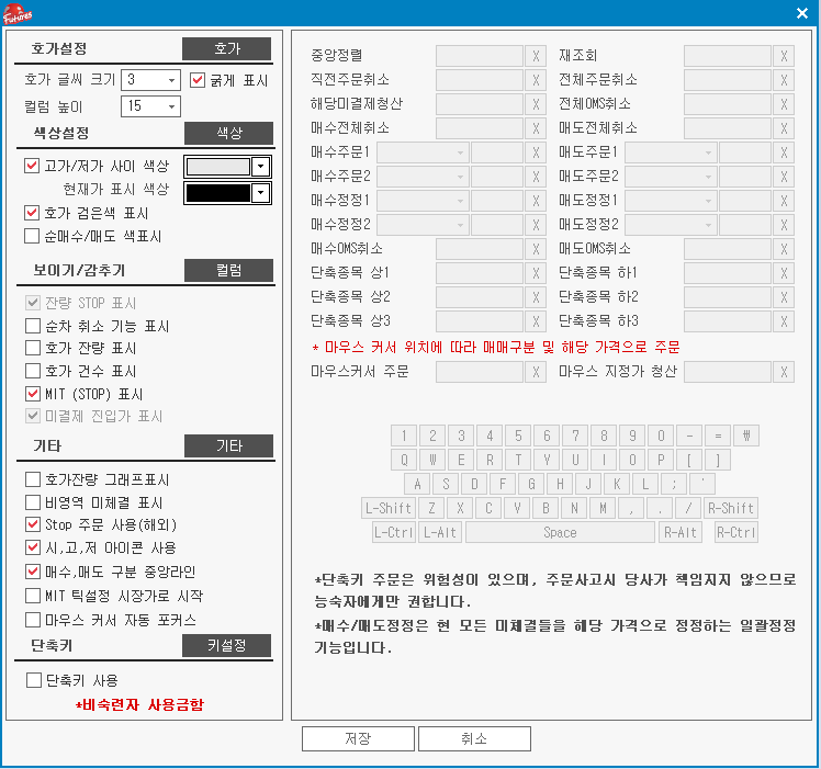 ↓HTS 원클릭주문1 띄우시고 아래와 같이 설정하시면 리딩 HTS와 같아집니다.