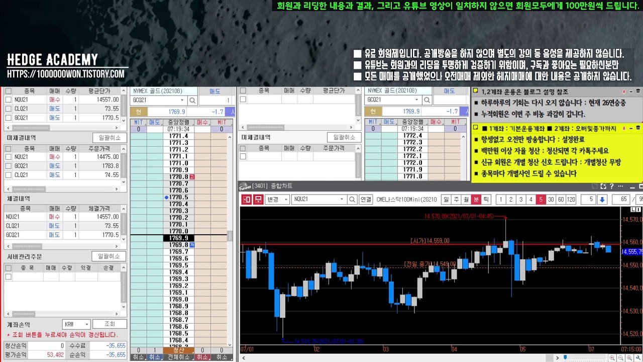 2021.07.01.목요일. [해외선물/파생/헤지아카데미] 27연승행진 종료. 손실마감