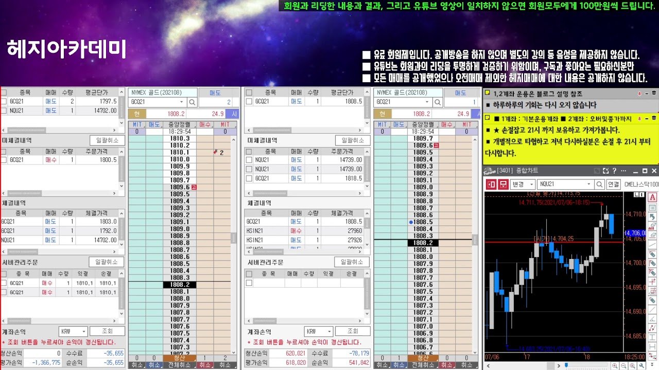 2021.07.06.화요일. 손실종료 [해외선물/파생/헤지아카데미] 21시 부터 또 시작