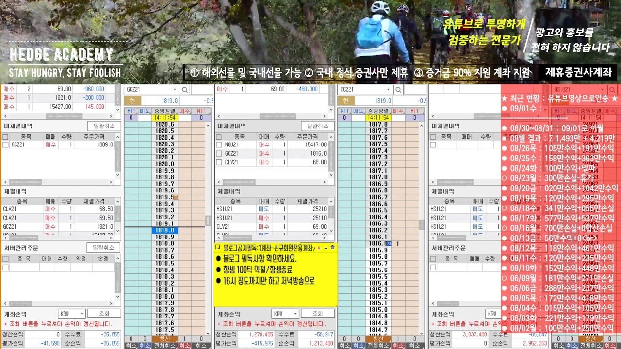 | 2021.09.01.수. +550+181+153 [해외선물/파생/헤지아카데미] 항셍전용계좌 추가 부분은 실패(추가 부분은 반영하지 않습니다) (0) | 2021.08.31 |