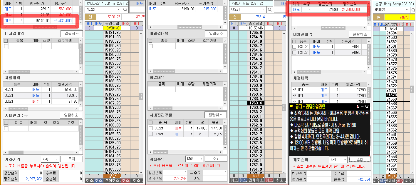 ◆ 어제 나스닥 오버하신 분들은 현재 항셍 수익을 나스닥 손실로 대체하셔도 됩니다. 늘 똑같이 하시는 분은 타협없이 그대로 갑니다.